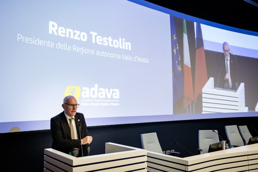 Il saluto istituzionale del Presidente della Regione Renzo Testolin ha ribadito la centralità del turismo per l’economia valdostana e l’importanza di un dialogo costante tra istituzioni e sistema delle imprese. Un messaggio ripreso e approfondito nella relazione del Presidente ADAVA Luigi Fosson, che ha tracciato un bilancio dei tre anni di mandato, definiti particolarmente intensi per l’Associazione.